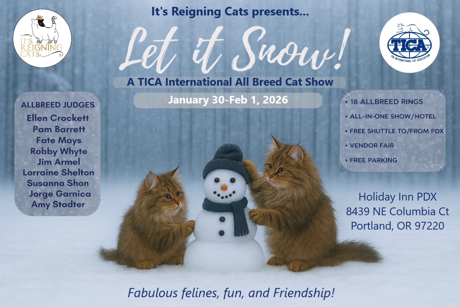 Huge thank you to our Show Sponsors. Without you, we could not bring our exhibitors and spectators such a big and exciting show! Want to contribute and see your cattery or business here in color? Fill out our Summary Form today!